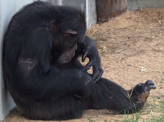 엄마를 잃은 후 우울증을 앓던 아들 침팬지가 한 달 뒤 숨졌습니다. 아들 침팬지는 자살한 것이 아닐까요? [사진=유튜브 화면캡처]